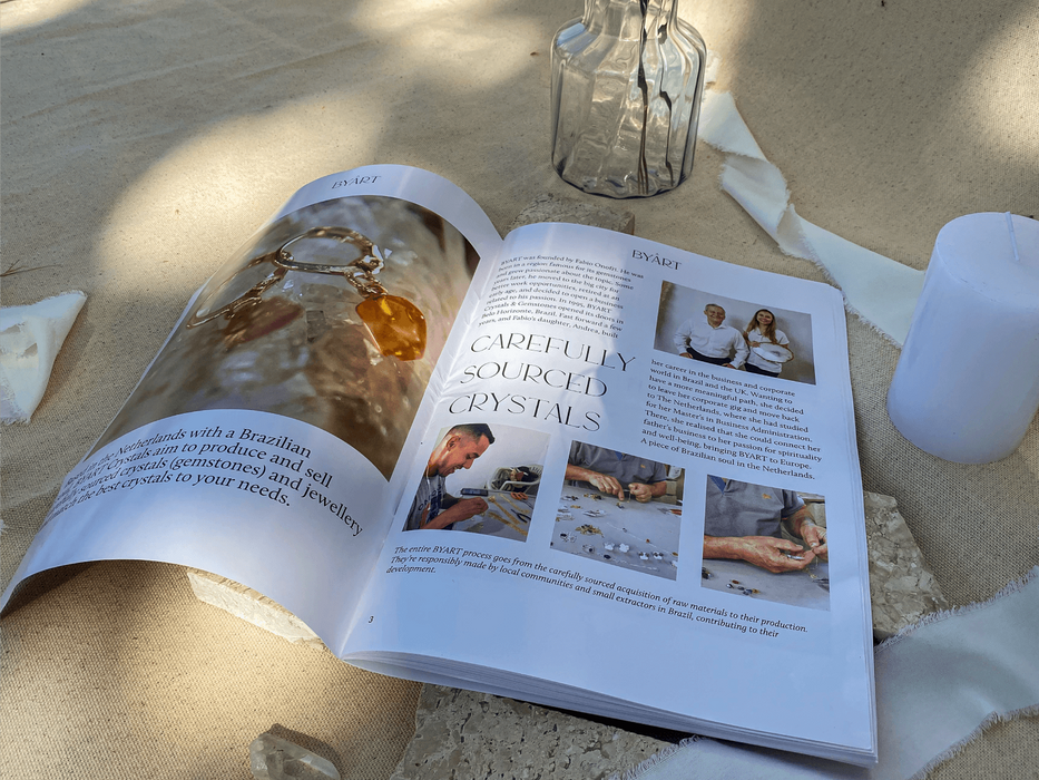Sediada na Holanda com alma brasileira, a BYART Crystals tem como objetivo produzir e vender cristais e jóias cuidadosamente selecionadas e de forma intencional conectá-los a pessoas.